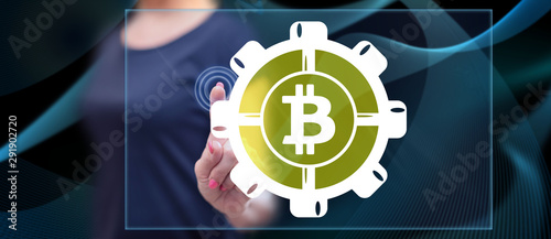 Woman touching a bitcoin concept