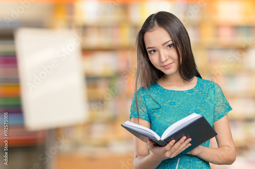 Woman university / college student holding book