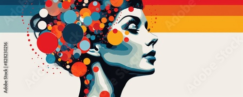 woman with a headpiece of multicolored bubbles on a light background. illustration concept.