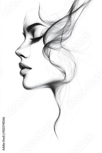 Woman’s face silhouette, with fluid, flowing lines, almost like water, as if her essence is merging with the passage of time.
