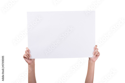 Woman's Hands holding empty white blank board