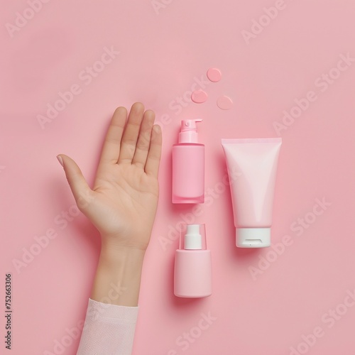 Women hand models and products Cosmetics, beautiful pastel background generative ai art art