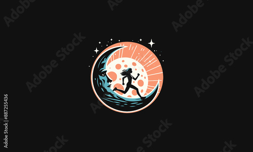 women run on moon vector logo design