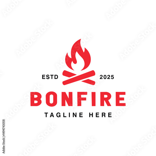 wood and fire vector logo , campfire , camping , logo design template.