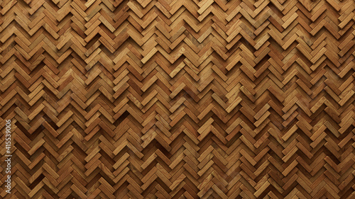 Wood Block Wall background. Mosaic Wallpaper with Light and Dark Timber Herringbone tile pattern. 3D Render