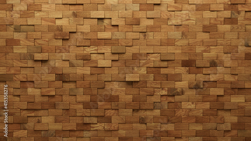 Wood Block Wall background. Mosaic Wallpaper with Light and Dark Timber Rectangle tile pattern. 3D Render