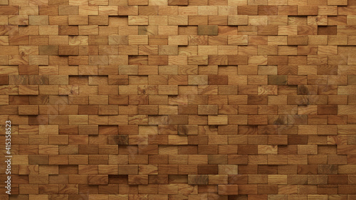 Wood Block Wall background. Mosaic Wallpaper with Light and Dark Timber Rectangle tile pattern. 3D Render