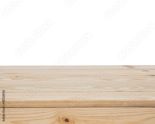 Wood table top on white background