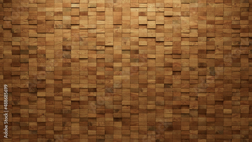 Wood Tiles arranged to create a Soft sheen wall. Natural, 3D Background formed from Rectangular blocks. 3D Render
