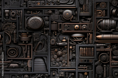 Wooden bauhaus modern gear seamless pattern background. Repeating decoration geometry for wall
