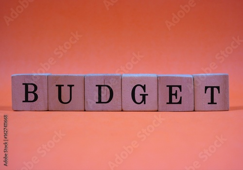 Wooden Blocks Forming the Word "Budget" on a orange Background