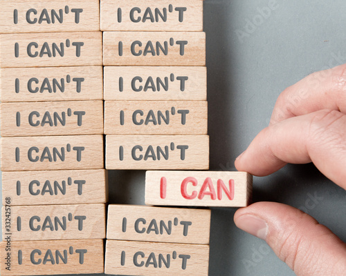 Wooden Blocks with I Can't and I Can Concept