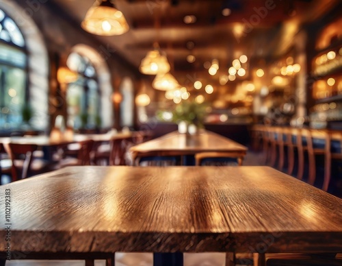 Wooden board empty table in front of blurred background Mockup restaurants, Kitchen