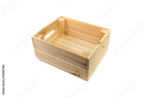 Wooden box or crate container isolated on white.
