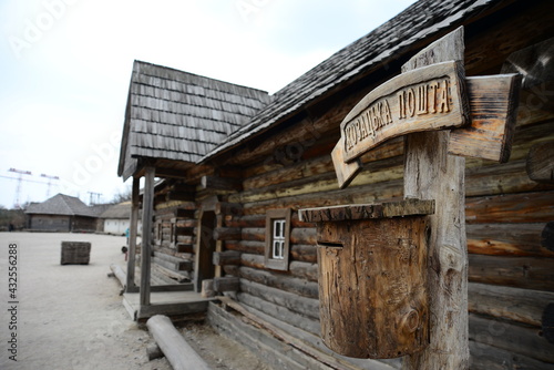 Wooden church. Wooden building on Zaporozhye Sich in Ukraine. Medieval church on island of Khortitsa in Zaporozhye