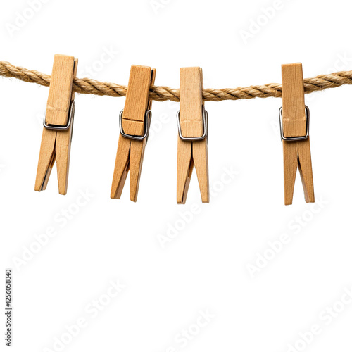 Wooden clothespins hanging on a rope simple and rustic design