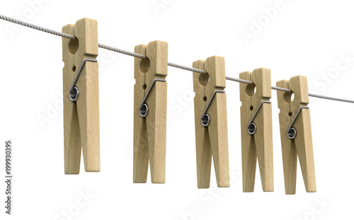 Wooden clothespins on rope. Image with clipping path