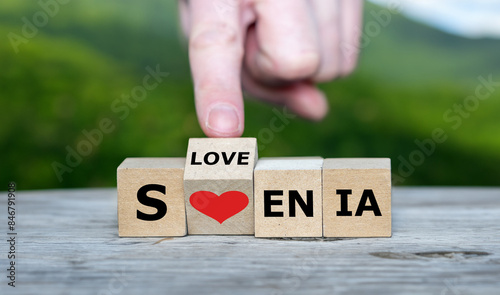 Wooden cubes form the word 'Slovenia'.