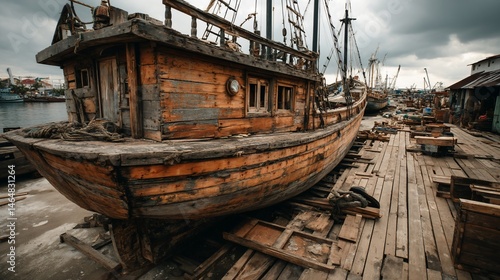 Wooden fishing boat repair