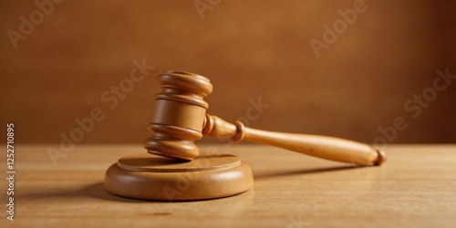 Wooden Gavel on a Polished Surface, Symbol of Justice and Legal Decisions