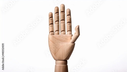 wooden hand with start posture isolated on white