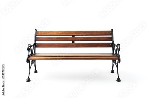 Wooden park bench, front view