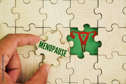Wooden puzzle with the word menopause. concept of female symptoms. the concept of women's disease. health and medical concepts