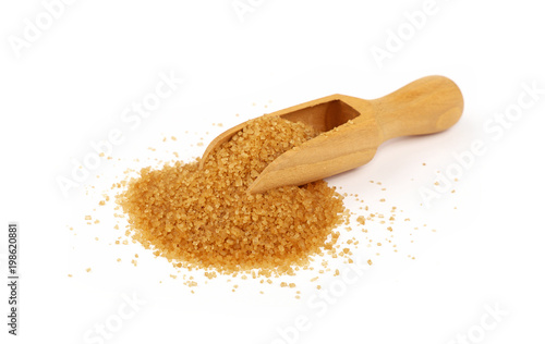 Wooden scoop spoon full of brown cane sugar