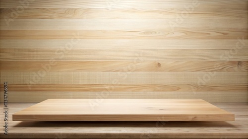 Wooden shelf on a backdrop of light wood planks, perfect for showcasing products or displaying items.