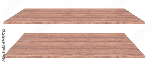 Wooden shelves on a white background For displaying products and advertising