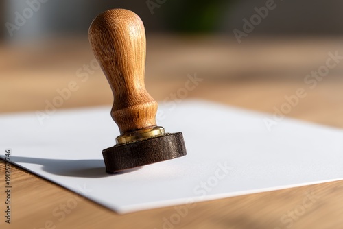 Wooden Stamp Leaving Impact Mark on Clean White Paper Surface