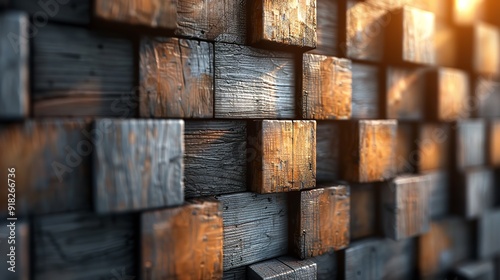 Wooden studio wall blocks. Wood panels wall texture. Generative AI