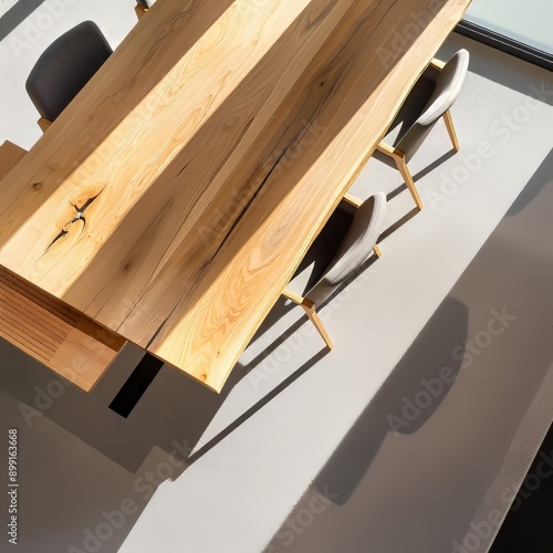Wooden Table with Chairs and Sunlight Streaming Through a Window
