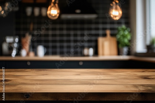Wooden Tabletop in Kitchen Interior