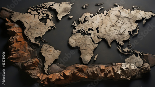 Wooden world map, war, ruins, wallpaper.