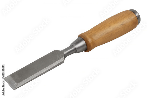 Wooden-handled chisel resting on clear surface, showcasing traditional woodworking tool for precision crafting