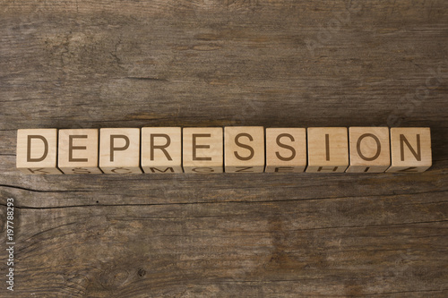 word DEPRESSION written on wooden cubes