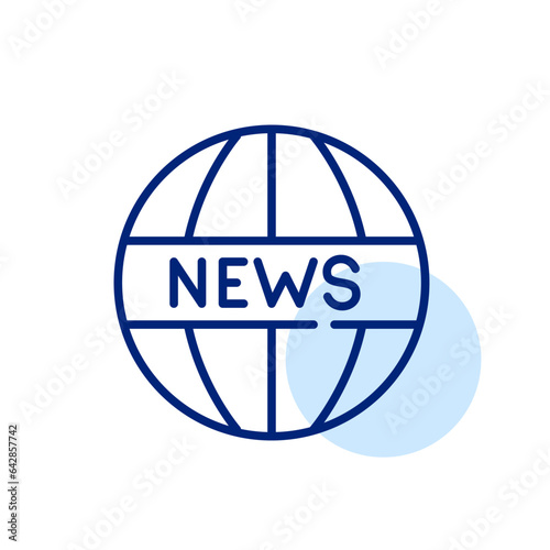 Word News on a world globe. International media coverage. Internet and TV technology. Pixel perfect, editable stroke icon