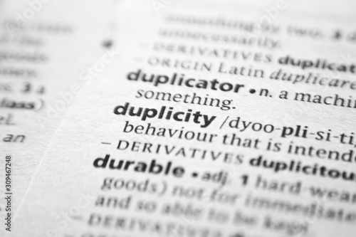 Word or phrase Duplicity in a dictionary.