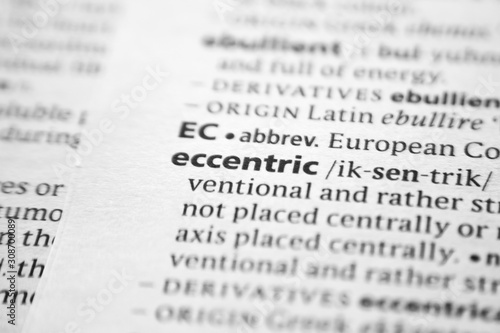 Word or phrase Eccentric in a dictionary.