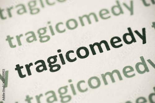 word tragicomedy printed on paper macro