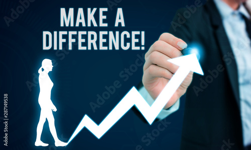 Word writing text Make A Difference. Business photo showcasing have significant effect or non on demonstrating or situation Female human wear formal work suit presenting presentation use smart device