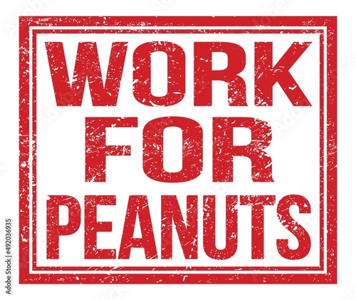WORK FOR PEANUTS, text on red grungy stamp sign