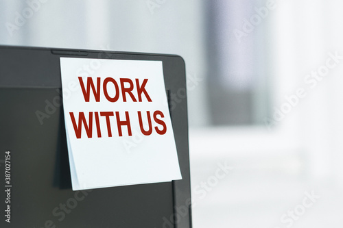 WORK WITH US CONCEPT note on monitor