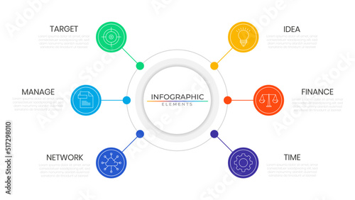 Workflow strategy infographic elements plan concept design vector with icons. Business workflow network project template for presentation and report.