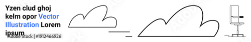 Workspace design, minimalism, creative offices, interior decor, cloud visuals, graphic elements. Line art of clouds next to a chair. Workspace design and minimalism concept
