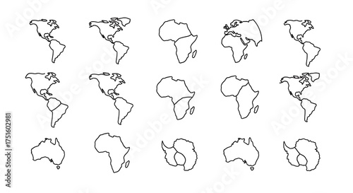 World Continents Outline - Minimalist Geographical Representation for Educational and Design Purposes.