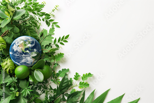 World environment and Earth Day concept withl globe and eco friendly enviroment on white background.