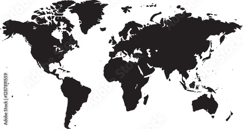 World map on white background. World map template with continents, North and South America, Europe and Asia, Africa and Australia