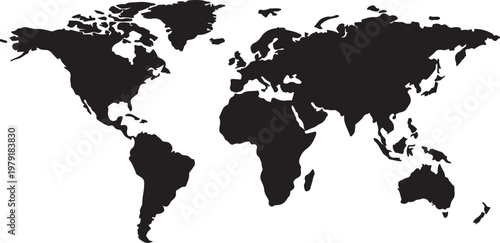 "World map silhouette vector illustration symbolizing global geography, travel, and international connection"